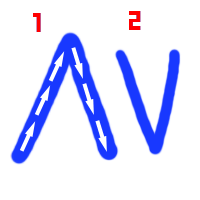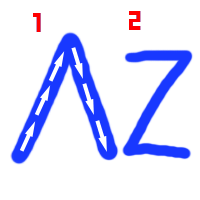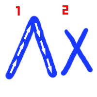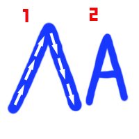50个笔势写法依次如下(红色数字表示笔画书写序号,笔画内的白色箭头表示书写方向):